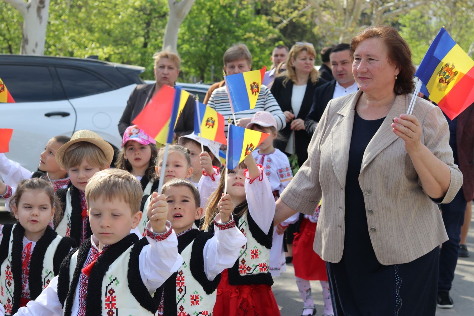 👧🧒 Copiii de la grădinițele din Cimișlia, însoțiți de educatori și directori, au adus energie și farmec, fluturând stegulețe și învățând semnificația fiecărei culori.
