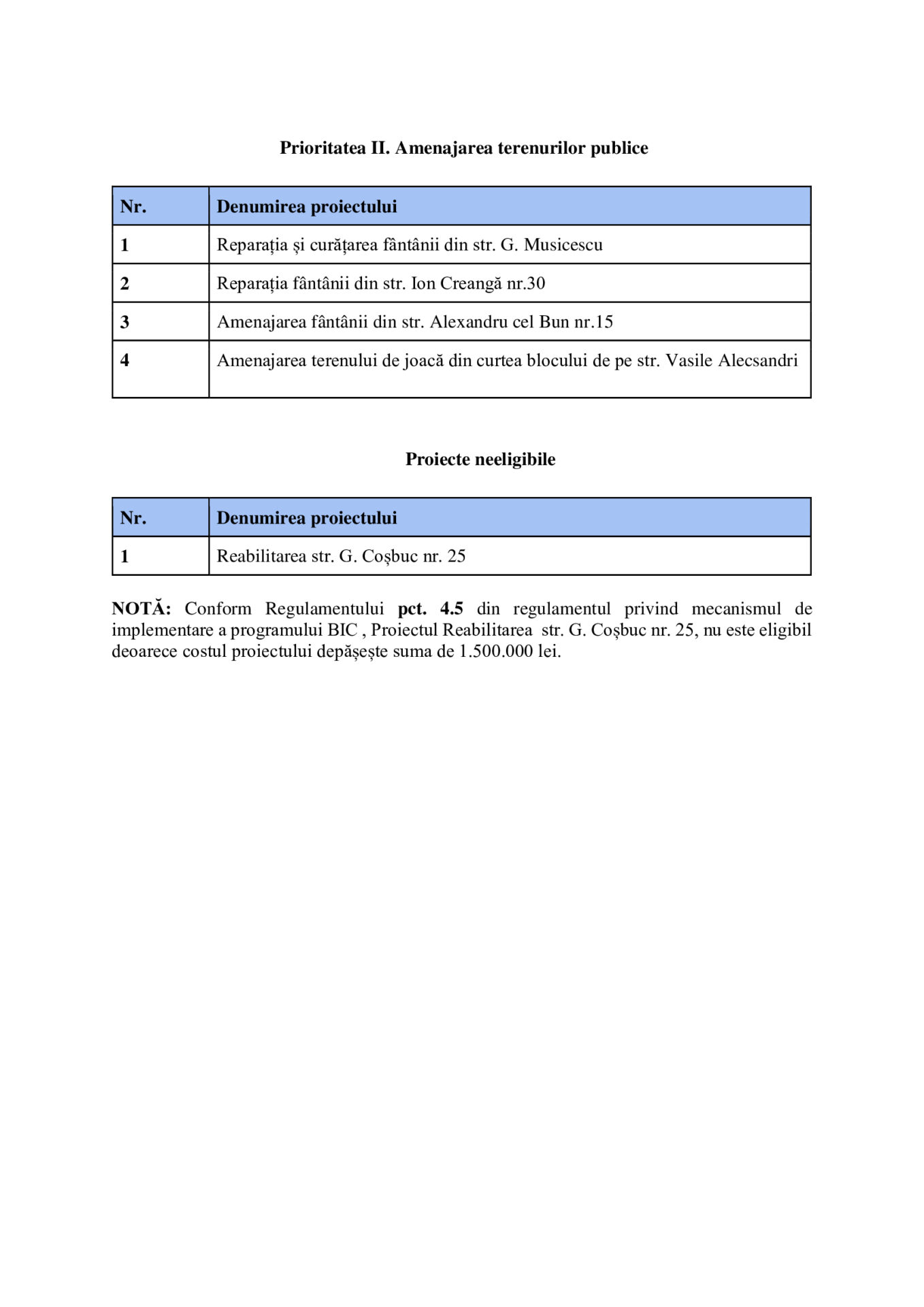 🔹 Prioritatea II: Amenajarea terenurilor publice