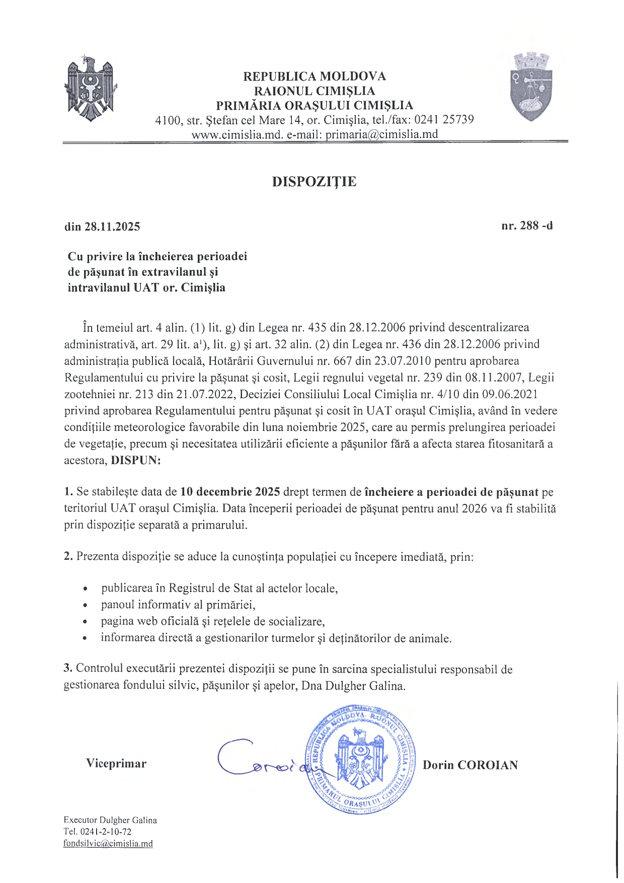 Primăria orașului Cimișlia informează cetățenii că, în conformitate cu Dispoziția nr. 288-d din 28.11.2025, data de 10 decembrie 2025 a fost stabilită drept termen de…