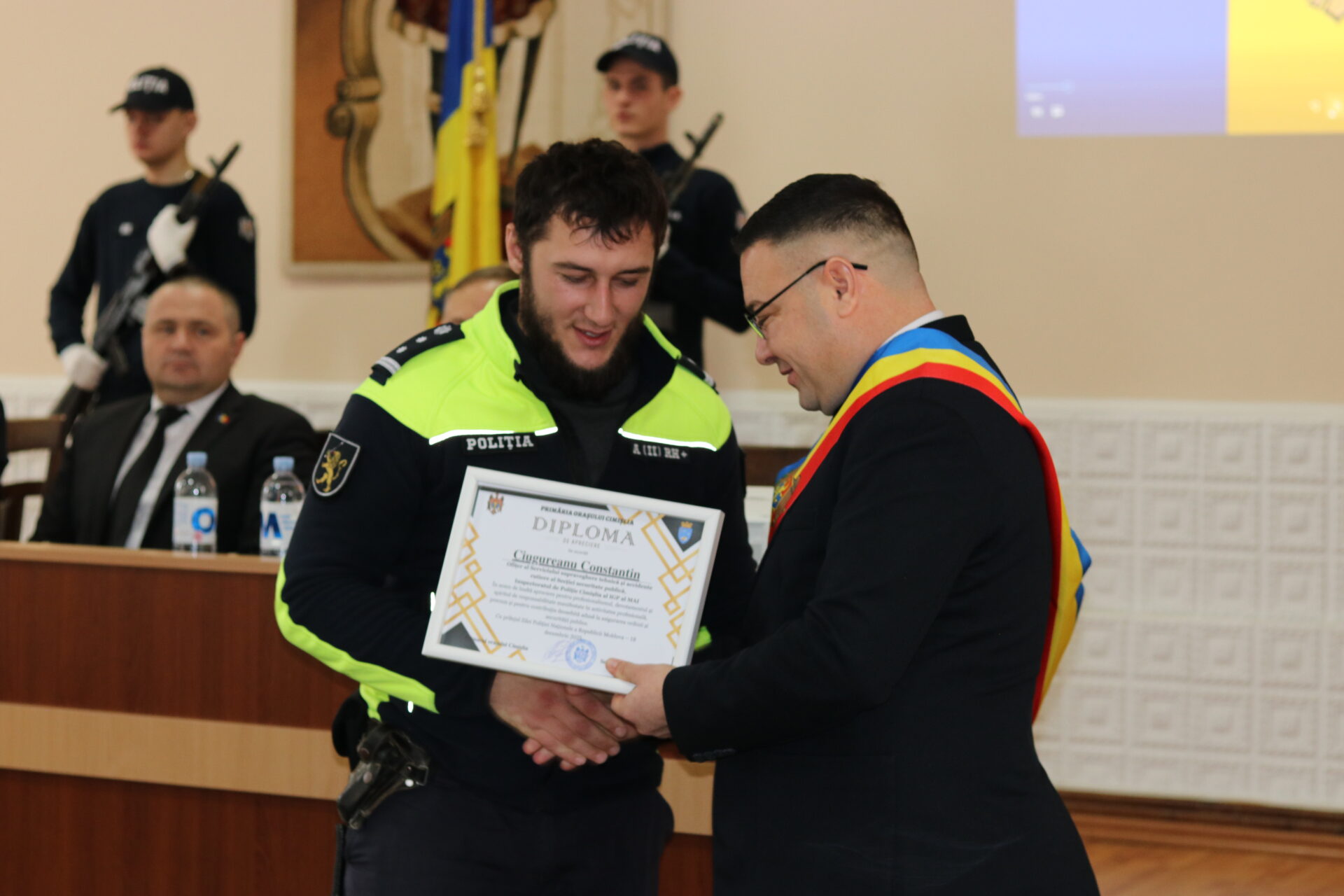 Cu această ocazie, au fost înmânate diplome de apreciere polițiștilor care s-au remarcat prin rezultate deosebite în activitatea profesională, pentru implicarea activă în menținerea ordinii publice și pentru contribuția adusă la consolidarea unui climat de siguranță și încredere în orașul Cimișlia.