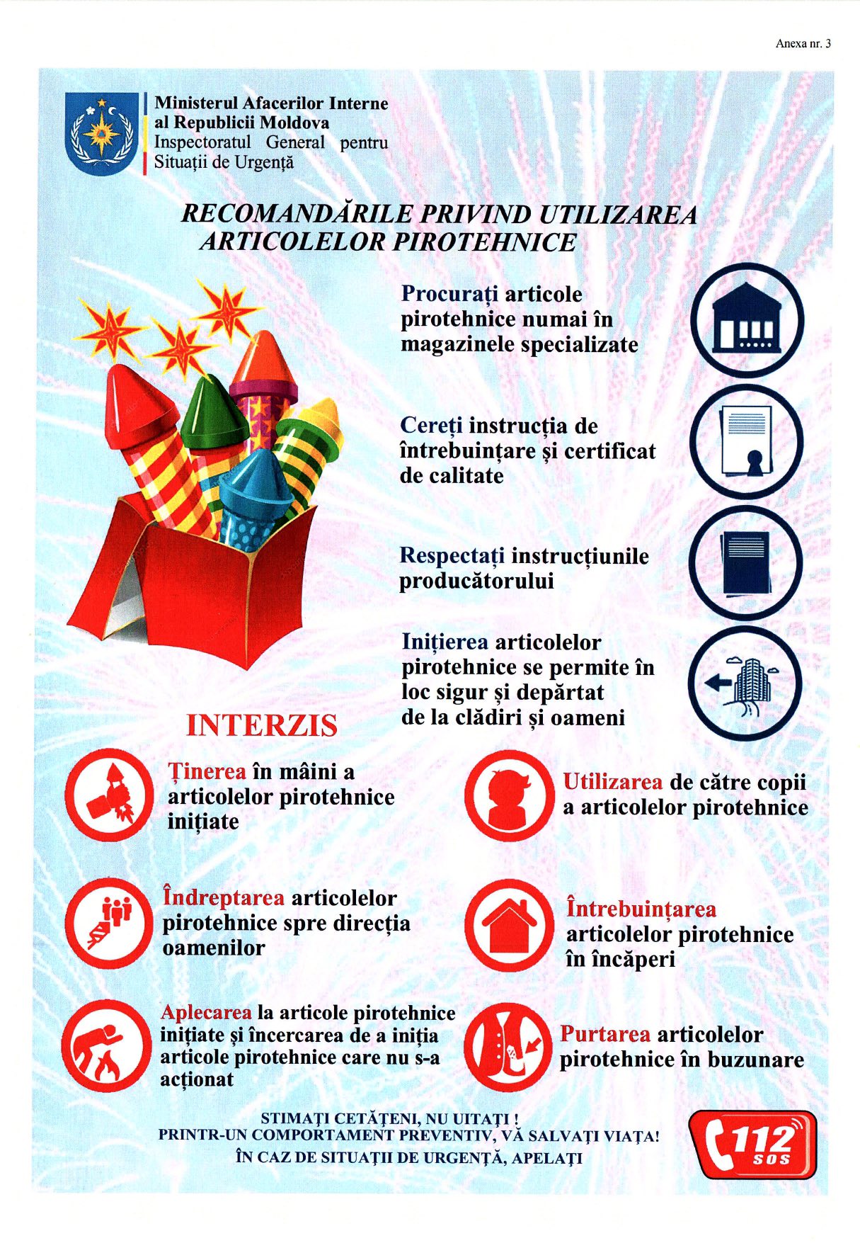 • utilizării articolelor pirotehnice, doar conform instrucțiunilor și în condiții de siguranță;